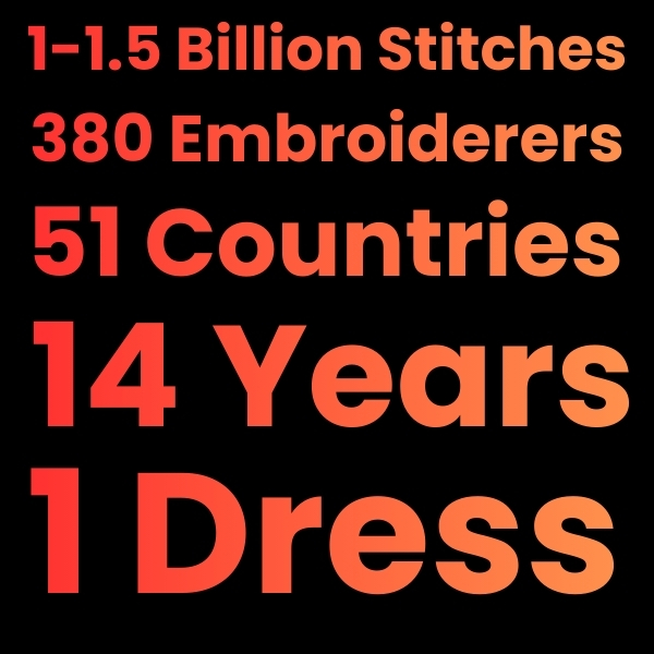 Whether you’re inspired by the sheer scale of the collaboration, the stories behind the stitches, or the beauty of the work itself, this dress continues to resonate long after you’ve walked past it.