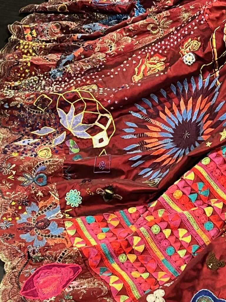 When you stand in front of it, you first see the detail – the motifs, the cultural references, the personal narratives stitched into silk and thread. But The Red Dress is far more than an artwork; it is a tangible symbol of shared humanity, reminding us that craft can be a language of connection, that creative collaboration can cross boundaries, and that every single stitch represents a voice, a life, and a story.