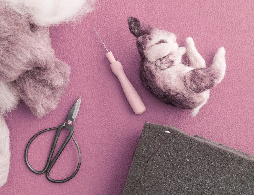 Dry Needle Felting – Matting wool by repeatedly stabbing it with barbed needles — ideal for 3D shapes or textured embellishments.